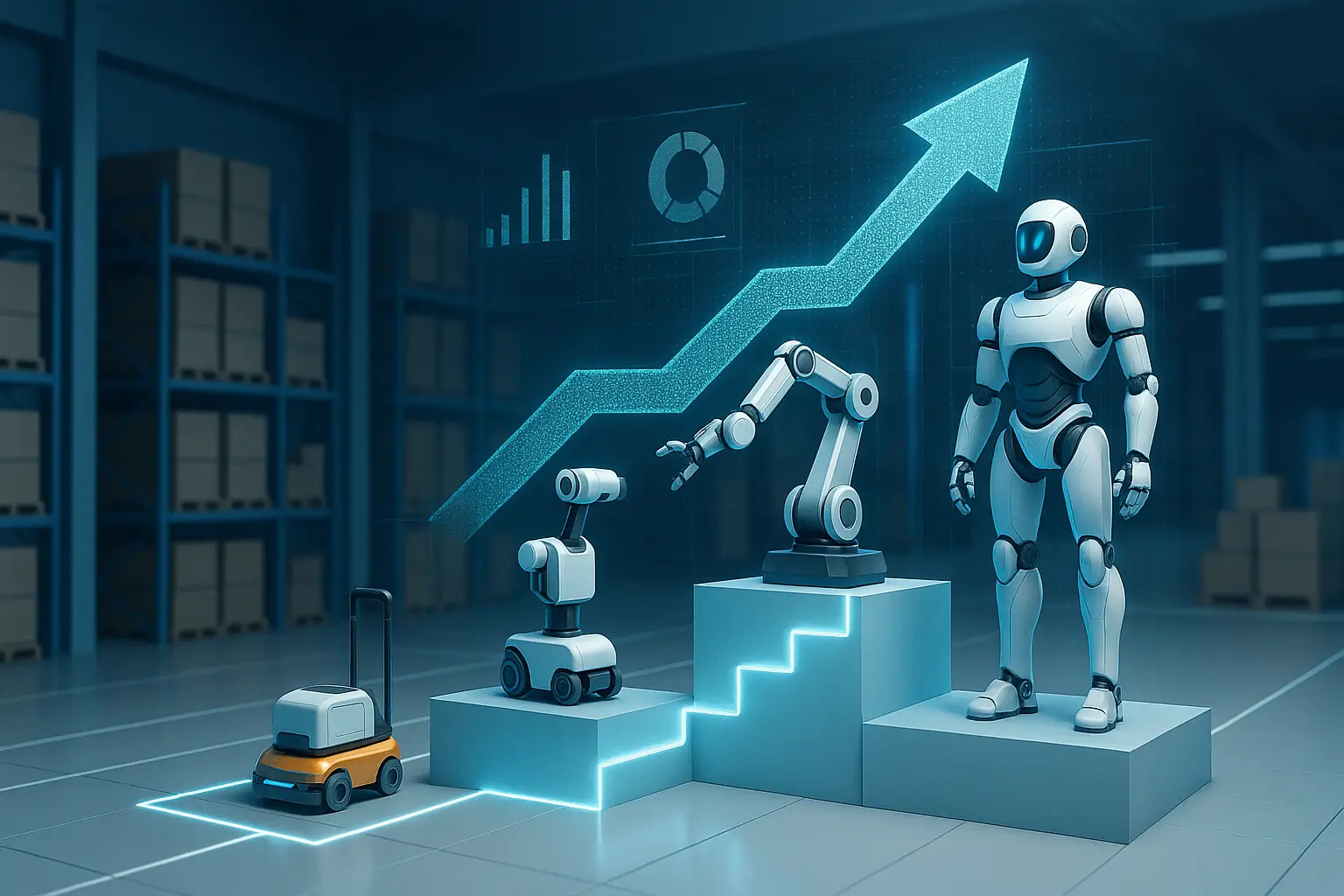 射出成形の金型試作のように、限定エリアでAMRやロボットアームを稼働させ、1〜3ヵ月で効果を検証します。ここで「人時生産性+◯◯%」など最低ラインをクリアできなければスケールが難しくなってしまうでしょう。